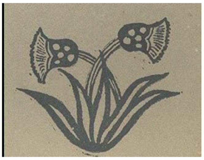 Además, la pintora compaginó el libro con cuatro ilustraciones. La primera viñeta es de una planta, que está en la página de presentación del título “canto kechwa” (Arguedas, 1938, p. 19). La segunda viñeta corresponde a las siluetas de dos peces, uno al lado del otro, para la canción “El agua negra…”, donde se menciona que la vida de los peces cambia con la llegada de los “repuntes” (Arguedas, 1938, p. 39). La tercera viñeta es de un ave que sostiene una hoja con su pico mientras se posa sobre una rama, para la canción “Llorabas solo patito”, al cual se le propone hacer un “nido” (Arguedas, 1938, p. 41). La cuarta es de dos aves distanciadas una de la otra, ambas posadas sobre una rama horizontal, en la canción “Como dos palomas…”, donde un hombre lamenta regresar a su pueblo sin la “mujer” con la que había partido (Arguedas, 1938, p. 51).